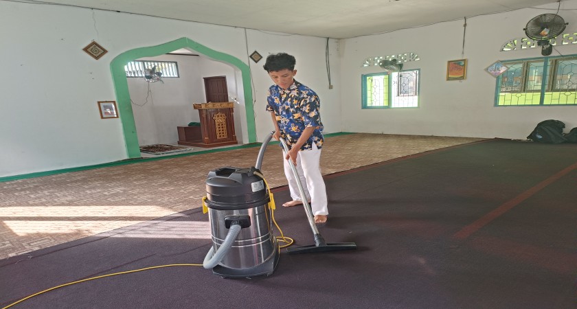 Mereka terlihat sibuk membersihkan bagian dalam dan luar masjid. Karpet masjid disedot debunya. Walaupun yang membersihkan karpet tidak menunjukkan senyum, tetapi dia tampak senang melakukannya. Dia rela melakukan itu. Kebanyakan teman-temannya sudah pulang.