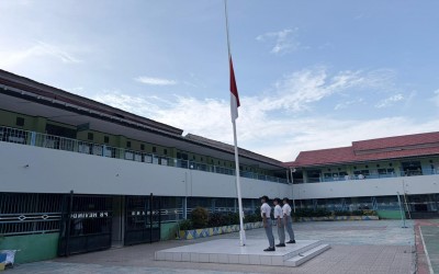 Di bawah langit pagi yang cerah, suasana khidmat menyelimuti halaman SMA Negeri 8 Balikpapan. Tiga petugas PASKAS berdiri tegap di depan tiang bendera